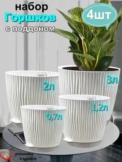 Горшок для цветов набор 0,7л, 1,2л, 2л, 3 литра кашпо