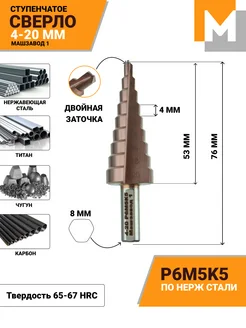 Сверло по металлу ступенчатое 4-20 кобальтовое Р6М5К5