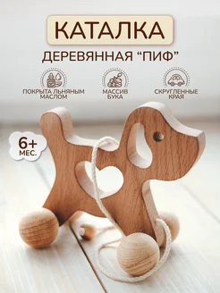 Деревянная машинка игрушка каталка "Пожарная машина"