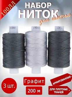 100ЛЛ Набор швейных ниток "Графит" 3 шт. х 200 м