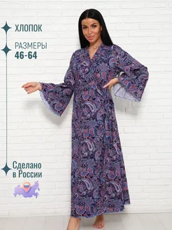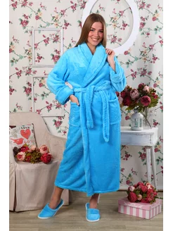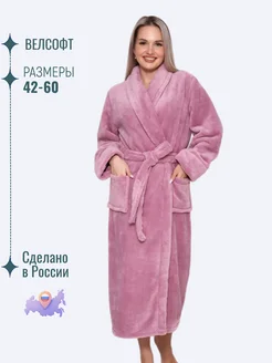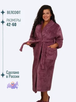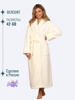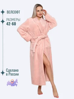 Халат женский домашний теплый на запах длинный велсофт пояс