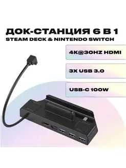 Док станция хаб для Steam Deck и Nintendo Switch 6 в 1