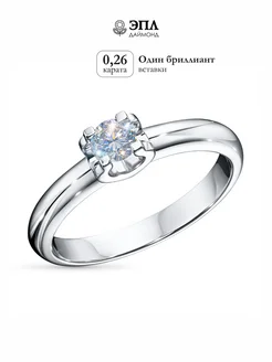 Кольцо с бриллиантом 0,26 карата серебряное 925