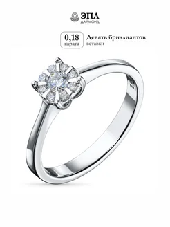 Кольцо с бриллиантами 0,18 карата серебряное 925