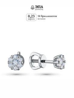 Пусеты с бриллиантами 0,23 карата серебряные 925