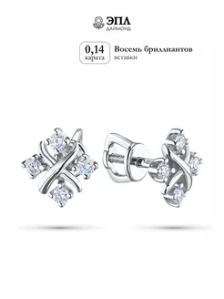 Пусеты с бриллиантами 0,14 карата серебряные 925
