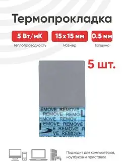 Термопрокладка для видеокарты 15мм*15мм толщина 0.5 мм 5 шт