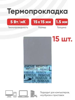 Термопрокладка для видеокарты 15мм*15мм толщина 1.5 мм 15 шт