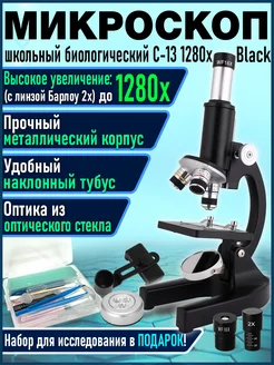 Микроскоп школьный учебный С-13 Plus Black с препаратами
