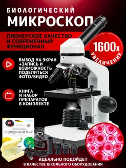 Микроскоп школьный 1600х с USB окуляром и препаратами