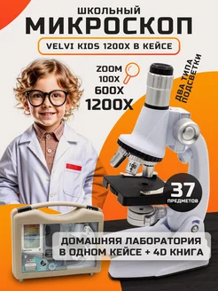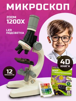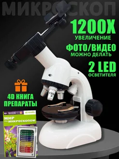 Микроскоп школьный детский в кейсе с дрежателем и книгой