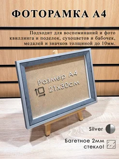 Фоторамка А4 21х30см, глубокая 10мм Silver