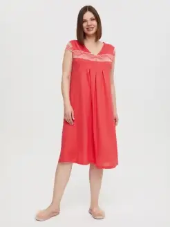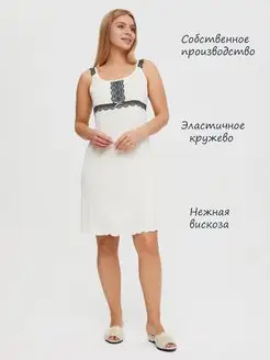 Ночная сорочка из вискозы с кружевом без рукавов облегающая