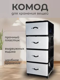 Комод пластиковый с ящиками, для вещей, черно-белый