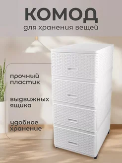 Комод пластиковый с ящиками, для вещей, 40х50х98 см, белый