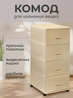 Комод пластиковый с ящиками, для вещей, 40х50х98 см, бежевый