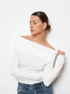 Кофта с открытыми плечами лонгслив вечерний с отворотом