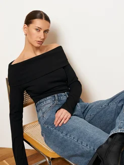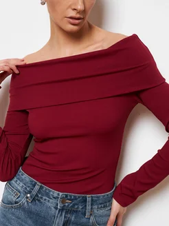 Лонгслив вечерний с отворотом кофта с открытыми плечами