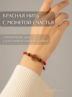 браслет на руку красная нить Монета счастья