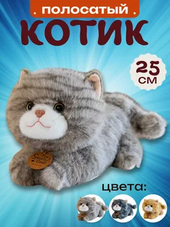 Мягкая игрушка милый Котик, кот полосатый серый 25 см