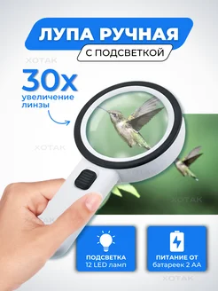 Лупа ручная 30x-80 mmс подсветкой (12 LED)