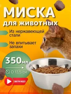 Миска металлическая для собак, кошек, животных, 0.35 л