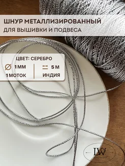 Объемный шнур для вышивки декора серебряный 1мм 5м