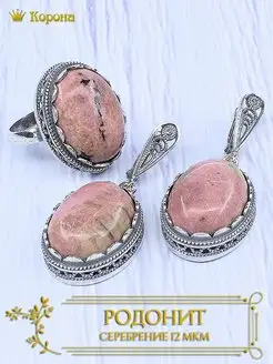 Комплект украшений с натуральным родонитом