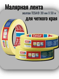 Малярная лента, скотч для четкого края 30х50м, Желтая 4334