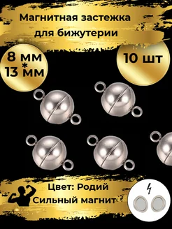 Магнитная застежка для бижутерии 8мм, 10шт. Родий