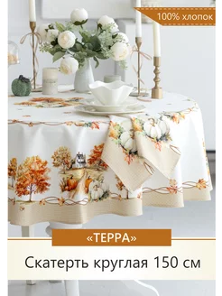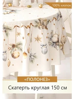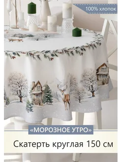Скатерть новогодняя тканевая круглая 150 см, хлопок