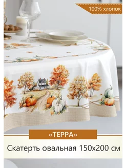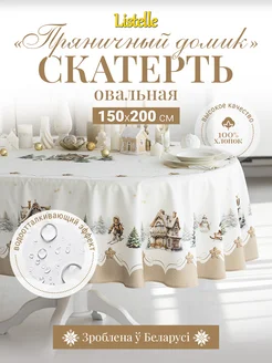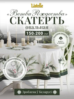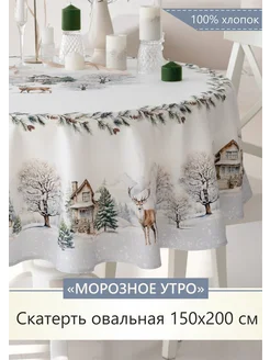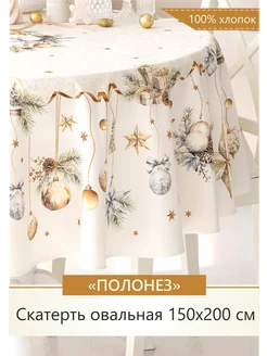 Скатерть новогодняя тканевая овальная 150х200 см, хлопок