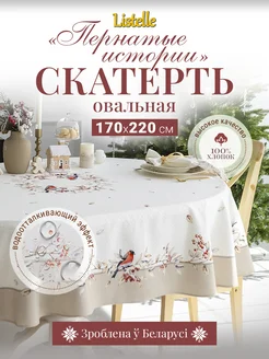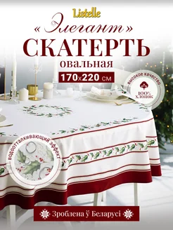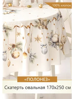 Скатерть новогодняя тканевая овальная 170х250 см, хлопок