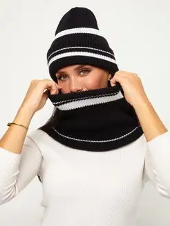 Шапка бини с отворотом вязаная осенняя из шерсти и кашемира