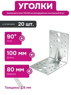 Усиленный металлический уголок 100х100х80 мм для крепежа