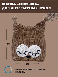Шапка для куклы "Совушка", одежда для кукол, для рукоделия