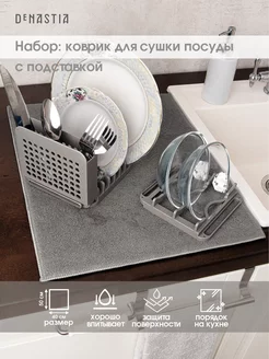 Коврик для сушки посуды+сушилка пластиковая из 3-х секций