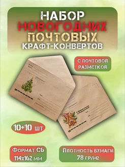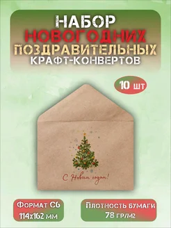 Набор почтовых новогодних крафт конвертов "Ёлочка", С6