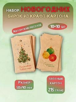 Набор крафт бирок "Новогодняя ёлка и шары", 5х9 см, 20 шт