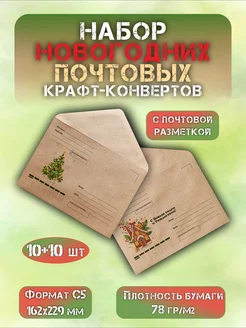 Набор почтовых новогодних крафт конвертов "Ёлочка" формат С5