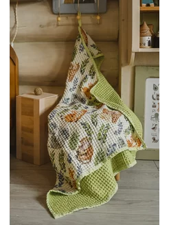 Вафельное банное полотенце с уголком 100х100 см для детей