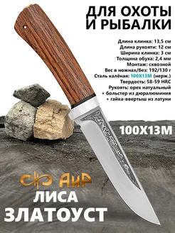Нож Лиса клинок 13,5см, 100Х13М, 59 HRC, орех-алюм-ввертыш