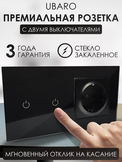 Розетка с выключателем двухклавишным встраиваемая стекло