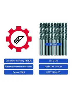 Сверло 5,2 ц х левое НАБОР из 10шт. Р6М5