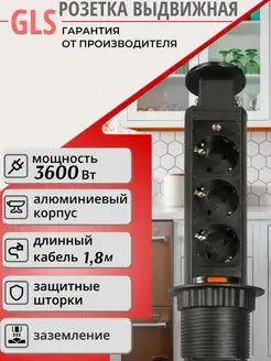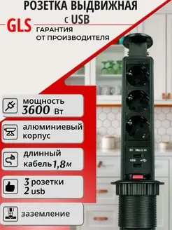 Розетки выдвижные вертикальные 3 евро USB-A+USB-C(PD+QC) 20W