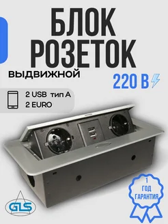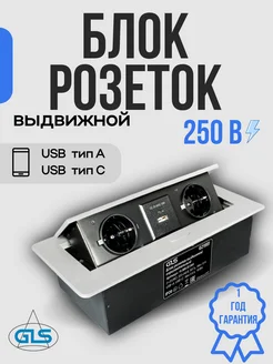 Блок розеток выдвижной горизонтальный 2xSCHUKO USB A+USB C