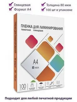 Пленка для ламинирования А4 80 мкм 100 шт глянцевая