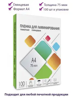 Пленка для ламинирования А4 75 мкм 100шт глянцевая
