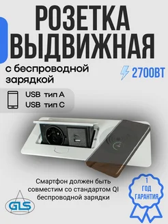 Выдвижная розетка с беспроводной зарядкой и USB A + C