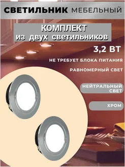 Светильник мебельный встраиваемый светодиодный 3,2 Вт 2 шт